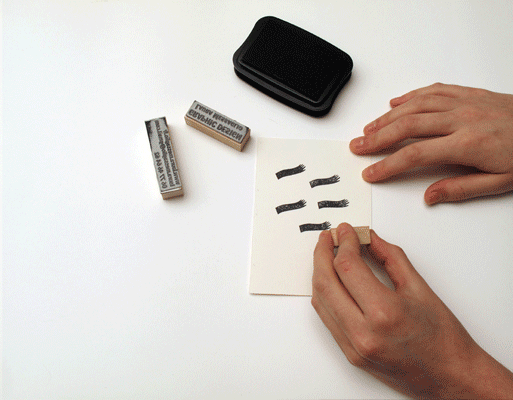 Pour mes cartes de visite j’ai choisi d’exploiter le tampon comme moyen de reproduction simple et efficace. Cette technique m’a permis de fabriquer des cartes de visite sur divers papiers et supports.