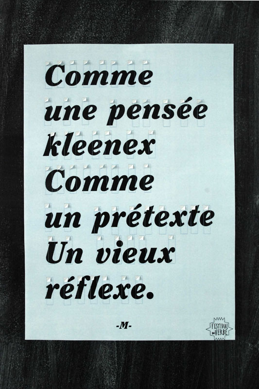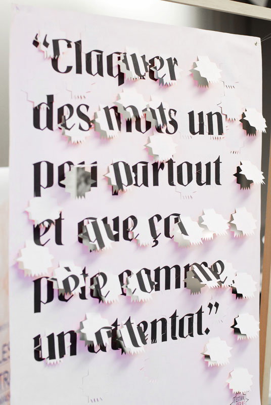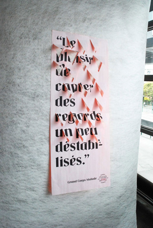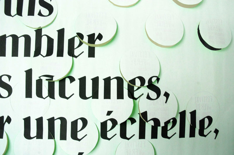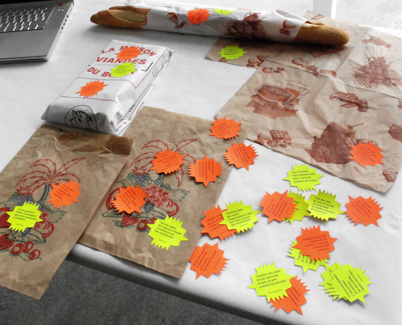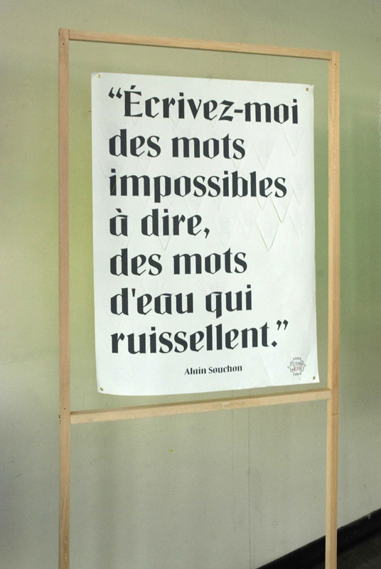 Les affiches, contenant des invitations mobiles deviennent au fur et à mesure illisibles avec l’intervention du spectateur.