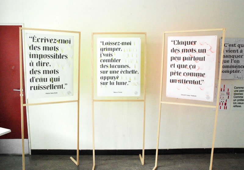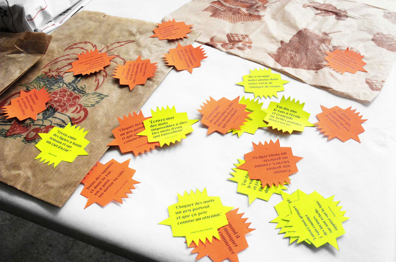 Les affiches, contenant des invitations mobiles deviennent au fur et à mesure illisibles avec l’intervention du spectateur.